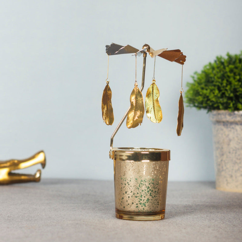 Feather Hanging Rotating Candle Holder